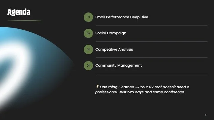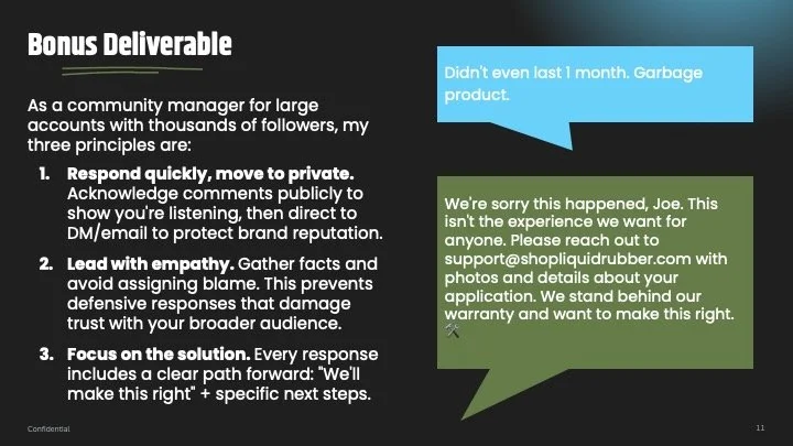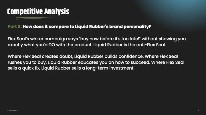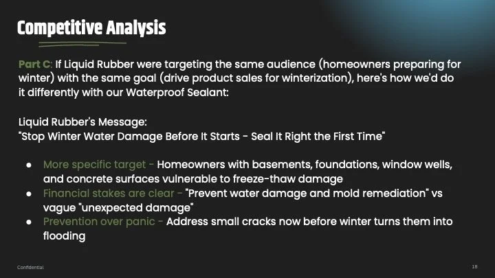 The Project: Developed a hypothetical digital marketing strategy for Liquid Rubber, a manufacturer of metal roofing and waterproofing products, including email optimization, social media campaigns, competitive analysis, and community management frameworks.